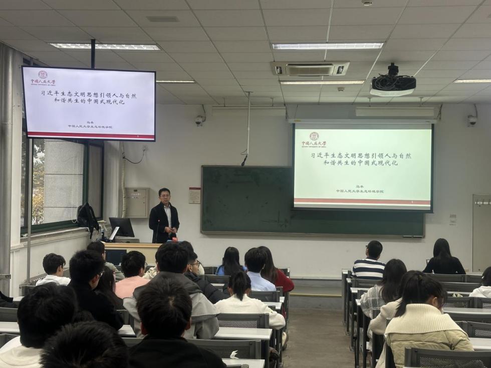 11月13日下午,分分28预测 第1期团校培训班在教三3104开展第一次集中学习,分分28预测 专任教师党支部书记马本为学员们讲授了《习近平生态文明思想引领人与自然和谐共生的中国式现代化》专题团课。团课讲授围绕实现人与自然和谐共生的现代化和习近平生态文明思想引领两个主要议题展开,通过学习,同学们对人与自然的关系有了新的体悟,激发了新生团员为推动中国式现代化贡献力量的热情与动力。