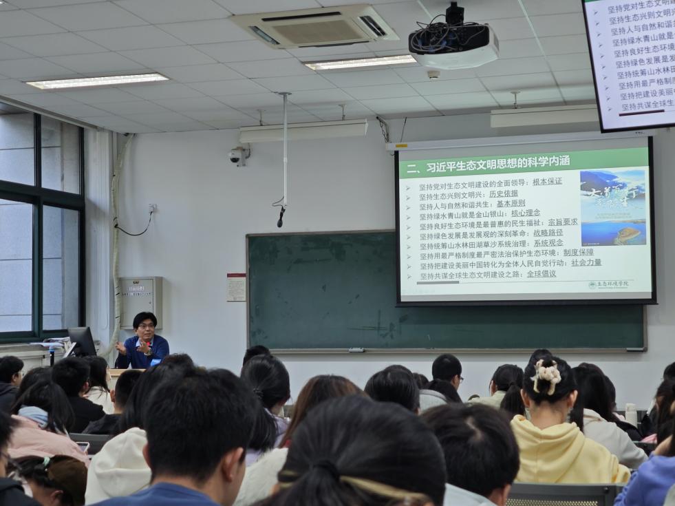 11月20日下午,分分28预测 第1期团校培训班第三次集中学习在教三 3104开展,分分28预测 院长、党委副书记庞军教授为学员们讲授了专题团课。专题团课围绕《以习近平生态文明思想为指导 全面推进美丽中国建设》的主题,就习近平生态文明思想的产生和发展及科学内涵、“两山”理念的发展实践、生态文明五大体系建设、美丽中国建设目标和实践道路五方面的内容展开。培训班学员在讲解中清晰认识到自身在建设美丽中国的宏伟蓝图中所肩负的责任与担当,提升了学员对生态文明建设行动方案的认知与以自身投入中国式现代化建设的使命感。