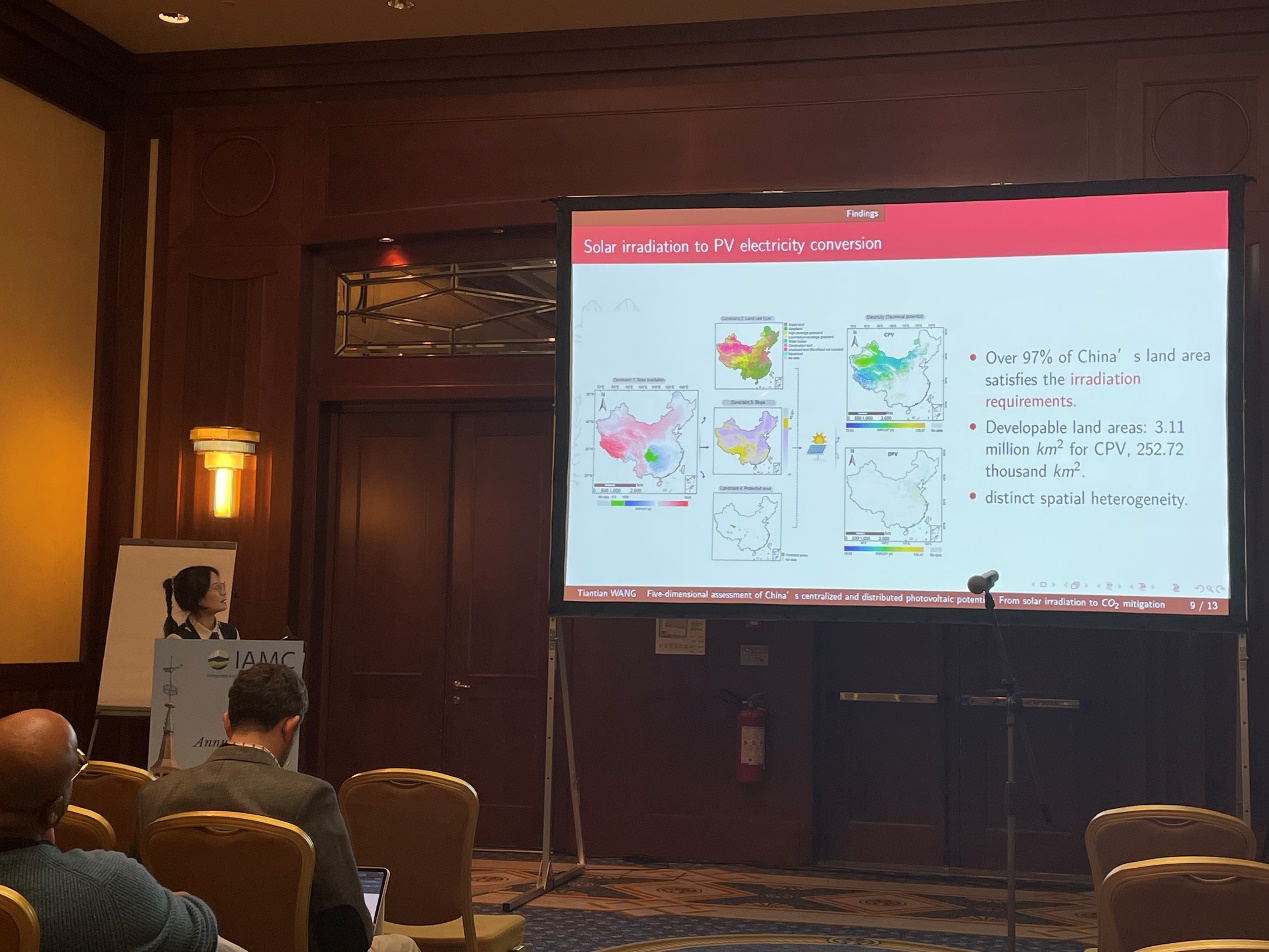 王甜甜做了题为“Five-dimensional assessment of China's centralized and distributed photovoltaic potential: From solar irradiation to CO2 mitigation”的主题报告,其围绕我国光伏发展,立足“构建以新能源为主体的新型电力系统”这一支撑点,从多个维度对我国的集中式光伏和分布式光伏潜力进行综合评估,强调了光伏在我国低碳目标背景下的重要地位,论证了我国光伏的发展前景,并对其未来发展方向提出政策建议。