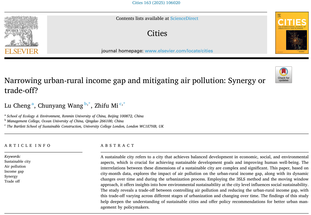 Lu Cheng et al : Narrowing urban-rural income gap and mitigating air pollution: Synergy or trade-off?