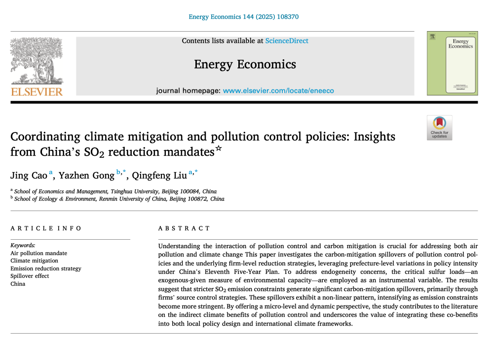 source: Cao J, Gong Y, Liu Q. Coordinating climate mitigation and pollution control policies: Insights from China's SO2 reduction mandates[J]. Energy Economics, 2025: 108370. //doi.org/10.1016/j.eneco.2025.108370