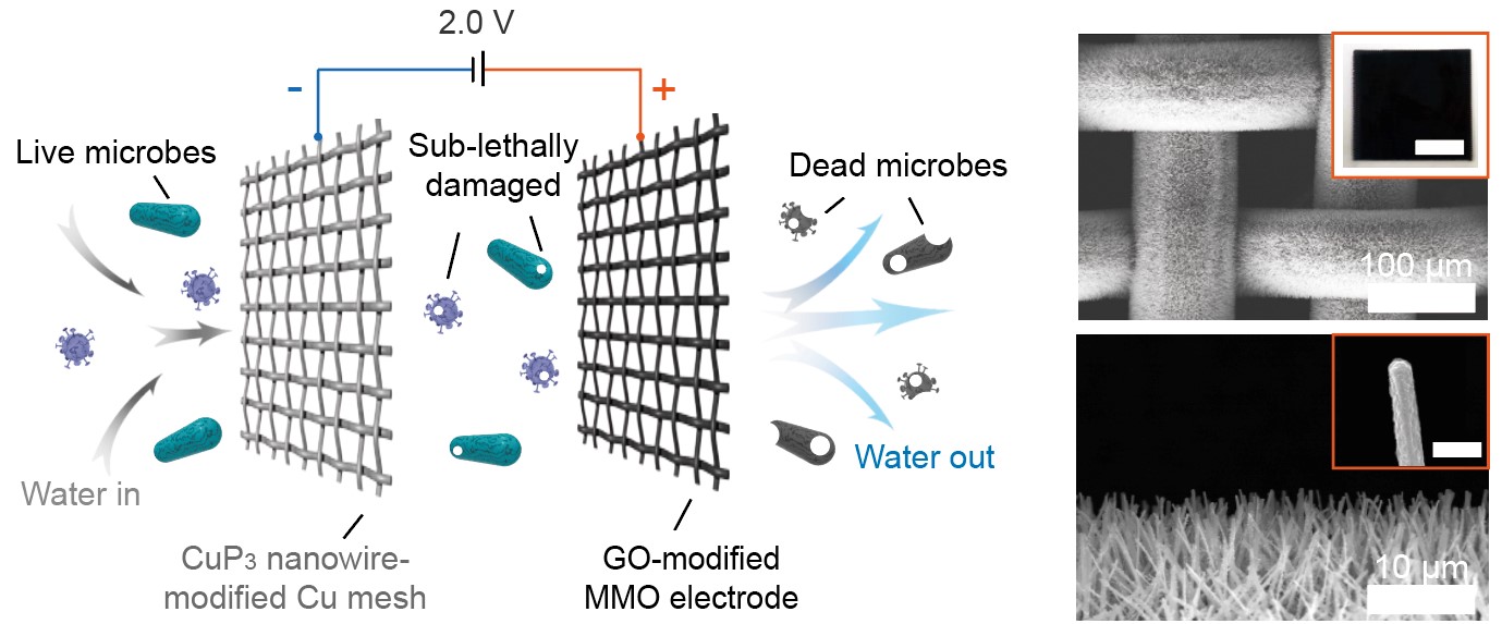【论文名称】Synergistic Nanowire-Enhanced Electroporation and Electrochlorination for Highly Efficient Water Disinfection