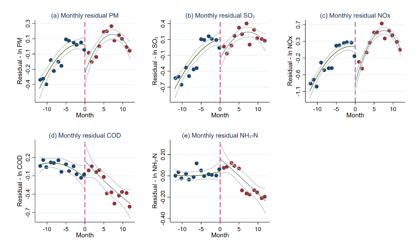 陕西省作为中国排污许可改革的试点省份以及作为全国第一个完成排污许可改革的省份,本研究以陕西省安装连续在线监测的工厂作为研究对象,收集了相关工厂的排污许可证核发时间、许可量信息、连续在线监测的排放数据,采用断点回归分析方法来识别在浓度管控基础上引入数量排放限值后企业的排污行为。