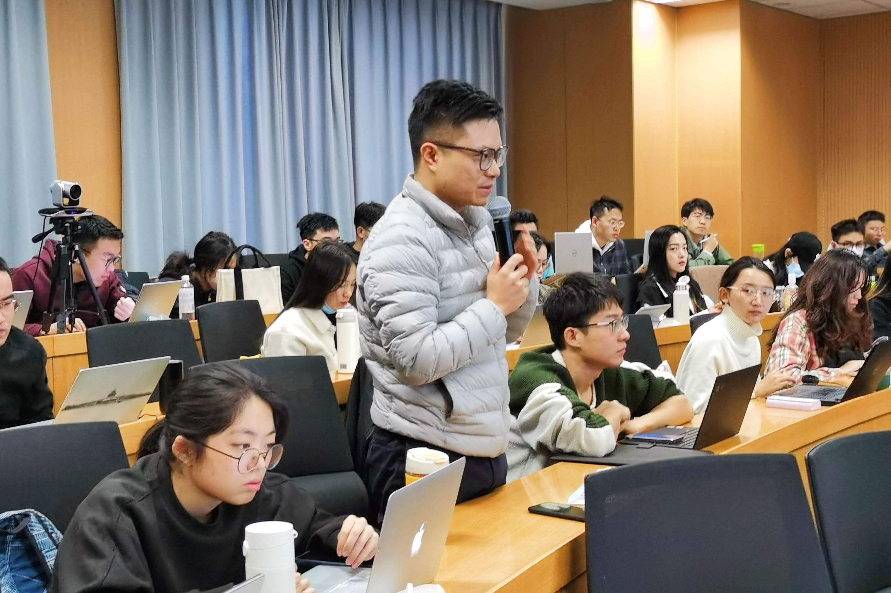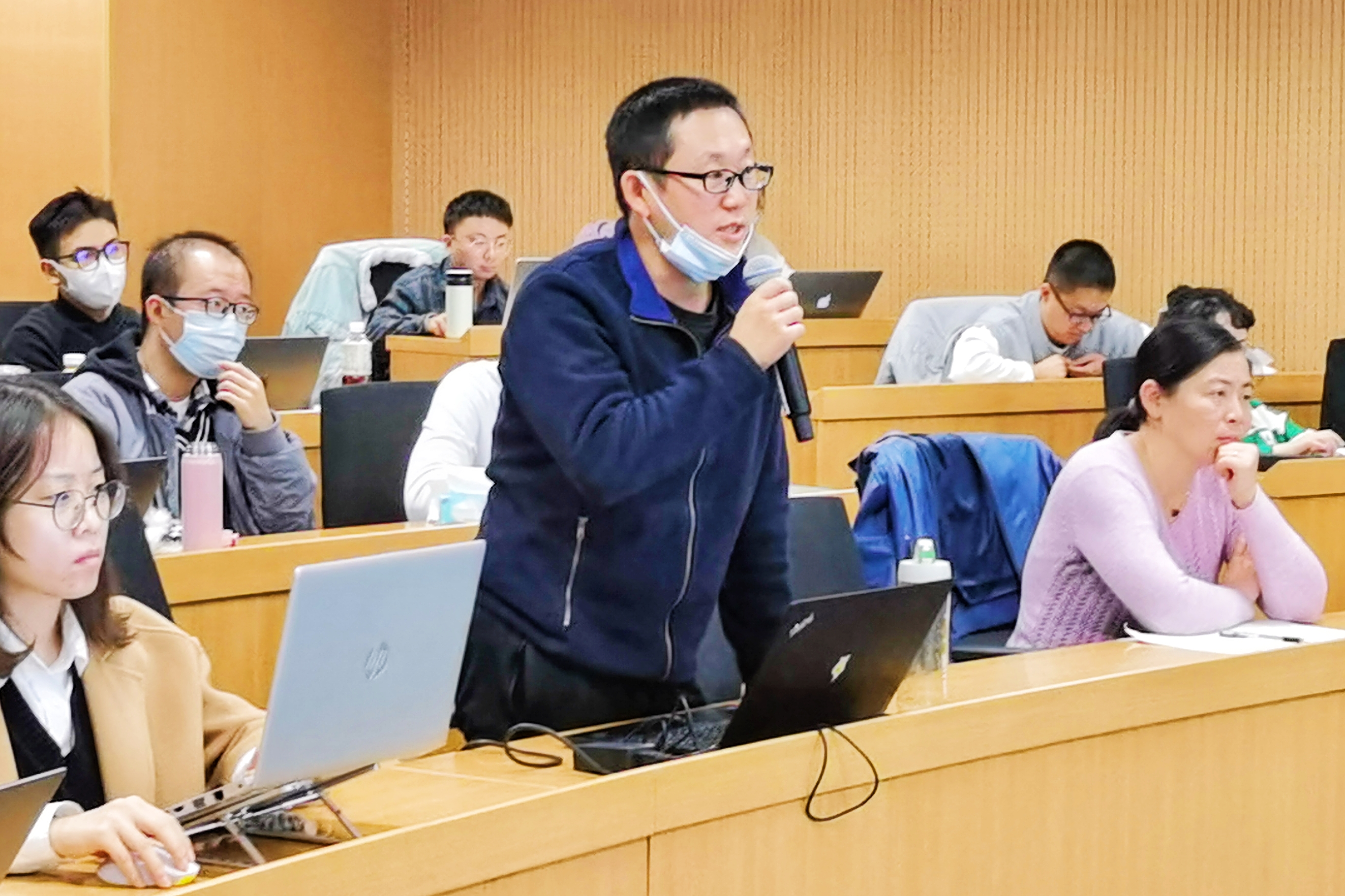 在交流讨论环节,与会师生针对学术报告中关于数据匹配、自选择问题处理、计量回归模型设定、政策的挤出效应和动态效应等问题,与杨冕教授及其研究团队进行了深入探讨,学术氛围热烈。