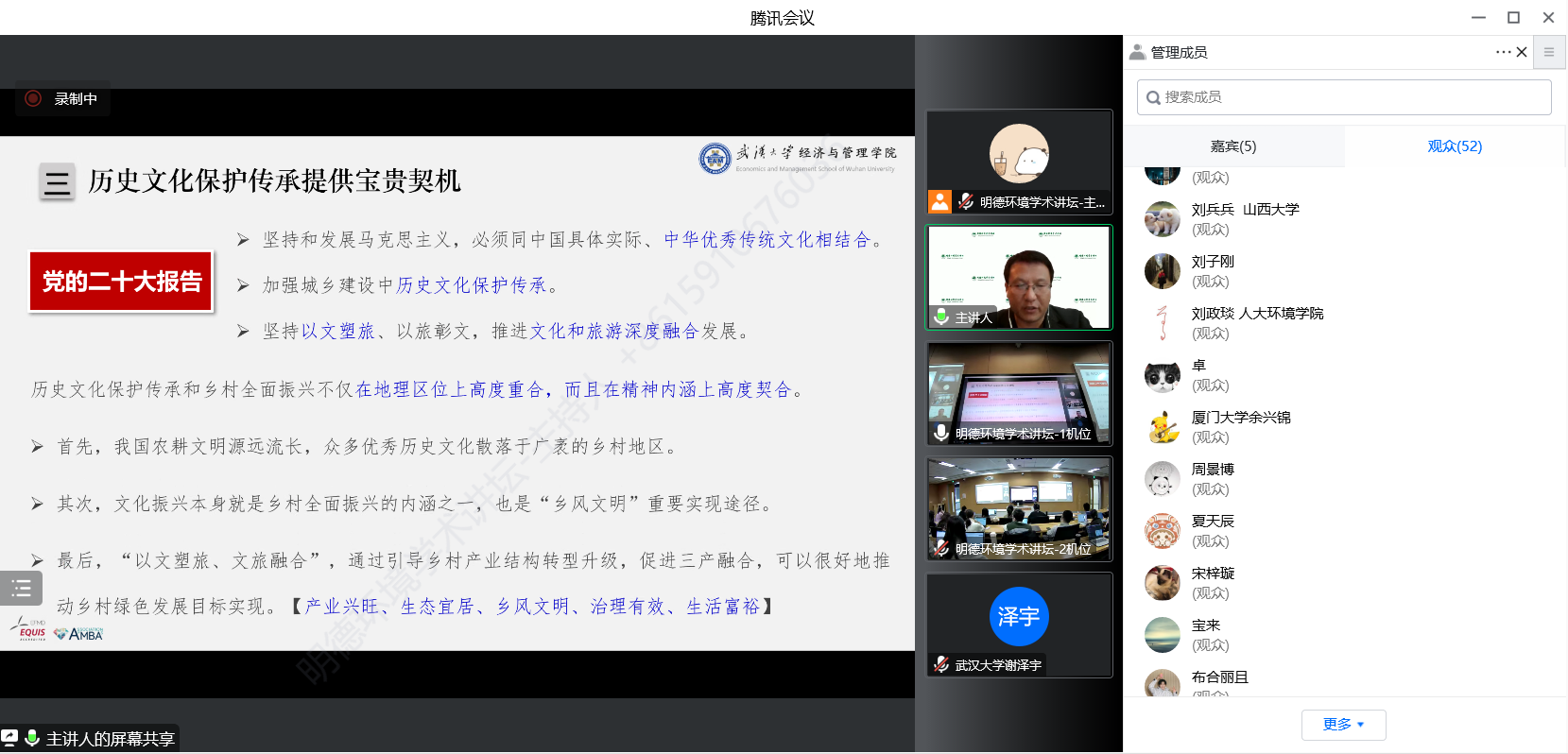 来自中国人民大学、武汉大学、清华大学、厦门大学、兰州大学、福州大学、山西大学、浙江工商大学、中国科分分28预测 科技战略咨询研究院等十余所国内外高校、科研机构等部门近200名师生及科研人员参加了本次讲坛。