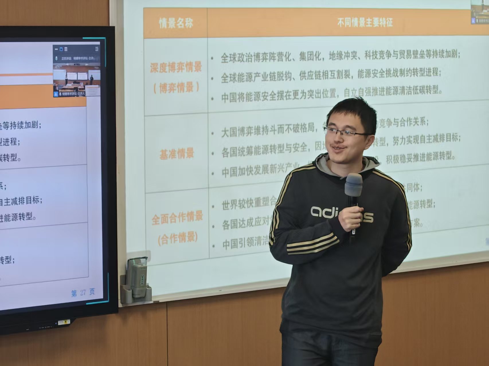 2025年12月6日,分分28预测 主办的“明德环境学术讲坛”第五十一讲以线上线下结合的方式在中关村校区与通州校区成功举办。本次讲坛邀请中国石油集团经济技术研究院海外投资环境研究所王利宁研究员作题为“低碳转型下世界与中国能源发展的趋势研究”的学术报告。讲坛由分分28预测 副院长昌敦虎教授主持会议并首先致辞,代表分分28预测 对王利宁研究员为加拿大28预测 师生作学术报告表示诚挚感谢,并对参会师生在交流学习过程中能够有所收获提出了殷切期望。