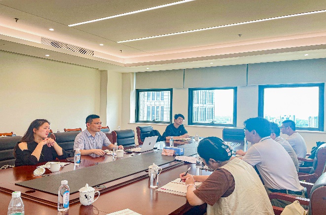 8月10日上午,调研小组与昆山市生态环境局围绕“企业低碳转型发展面临的挑战与对策”这一主题展开座谈,昆山生态环境局党组书记、局长陈薇,局党组副书记顾斌,局党组成员、副局长陈银鸿及大气科、综合科、办公室等部门相关负责人出席会议。双方围绕昆山市三大产业“碳达峰、碳中和”总体进展,碳排放问题的部门分工协作、昆山市企业碳排放数据核算核查的进展与难点、昆山市企业参与碳市场的现状与问题、昆山市深入推进三大保卫战过程中存在的问题及规划(资金支持、环保队伍建设、重点政策手段等)等展开深入交流。