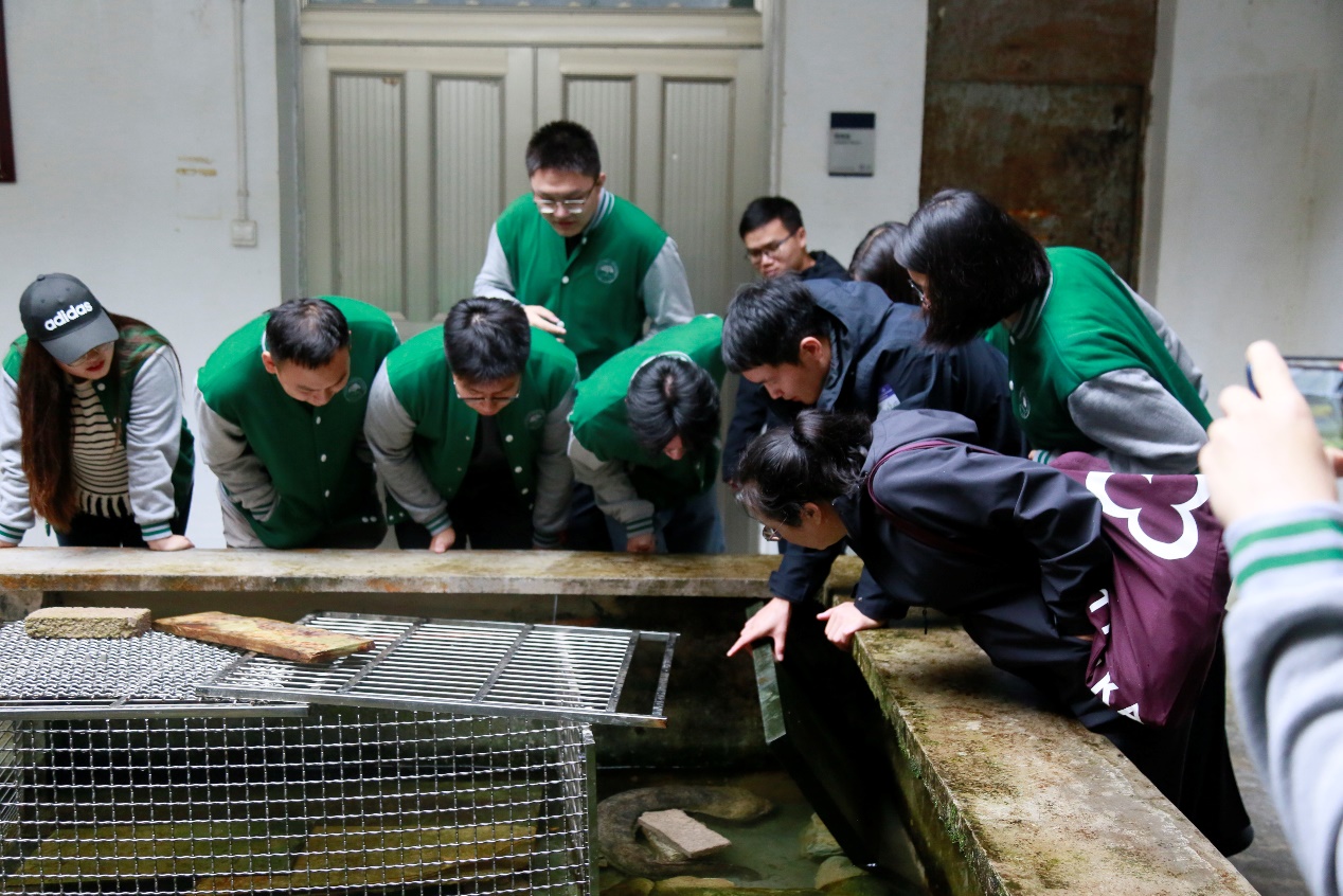10月10日下午,调研团抵达梵净山管理局黔金丝猴繁育研究中心,考察黔金丝猴保护工作开展情况。黔金丝猴被誉为“世界独生子”,目前全世界仅分布于梵净山,现存数量为800只左右。在方圆428平方千米的贵州梵净山国家级自然保护区中,黔金丝猴属于旗舰物种,也是森林生态系统完整性的标志性物种,对其的保护和研究工作是重中之重。在研究中心副场长杨伟的讲解下,调研团了解到,1990年梵净山保护区成立野生动物救护中心,开展以保护黔金丝猴为主的珍稀濒危野生动物救护研究,成功探索提高了黔金丝猴人工饲养警育及饲养护理的技术水平,并于2022年保护区启动了黔金丝猴拯救保护工程项目,从就地保护和迁地保护两个方面全方位地开展黔金丝猴拯救保护。此外,得到救助的还有藏酋猴、娃娃鱼等多种珍稀动物。在黔金丝猴康康、小梵、黔宝一家人与救护员亲密互动中,同学们深刻理解了人与自然和谐共生的重要意义。拯救黔金丝猴也成为了中国践行联合国生态多样性公约的典型案例。