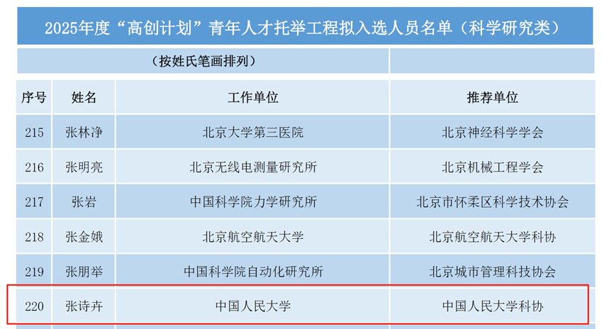 分分28预测 青年教师张诗卉入选北京市2025年度“高创计划”青年人才托举工程