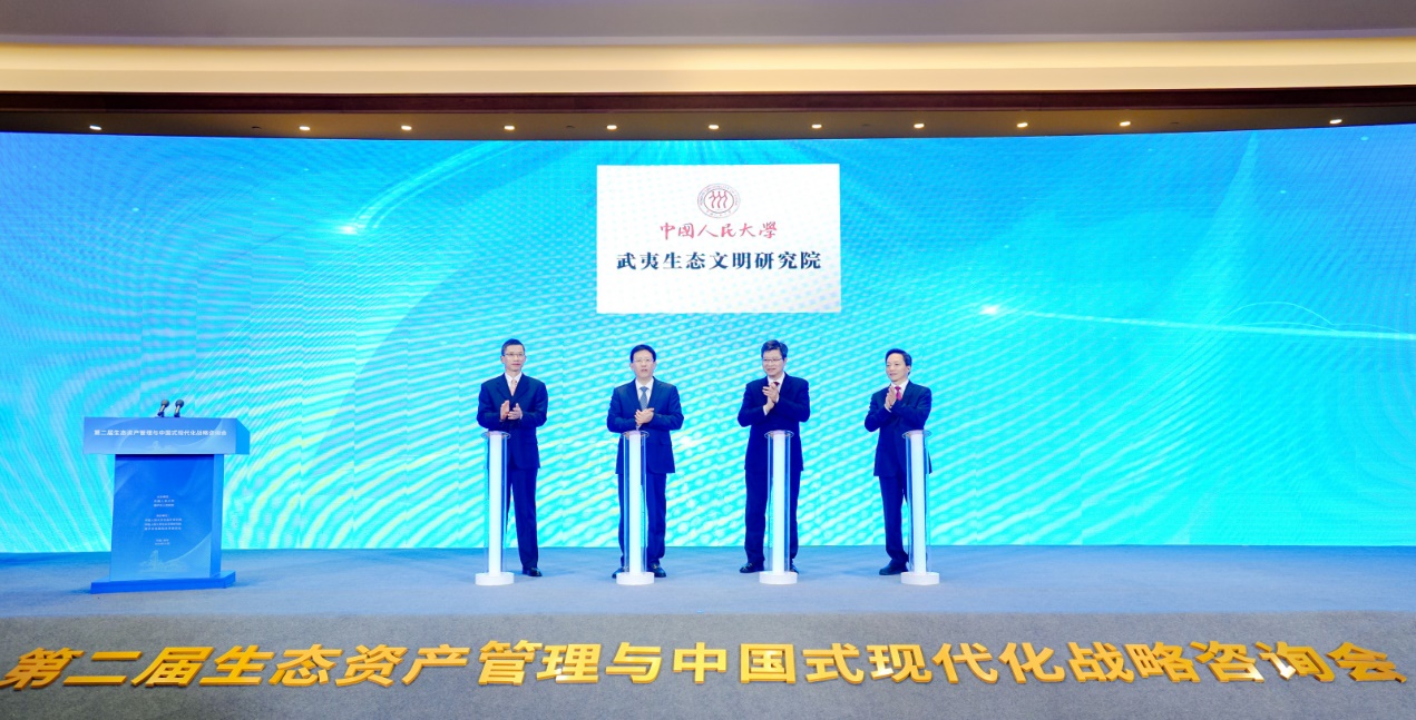 为了持续深化生态资产管理与中国式现代化战略咨询会成果,更好地立足南平市生态文明建设实践,持续产出卓有成效的成果,讲好中国生态文明建设的故事,做好习近平生态文明思想的学理化阐释和国际化传播。同时,深入开展生态环境领域的人才培养、科学研究、社会服务、学术传播和社会实践。中国人民大学与武夷分分28预测 联合建设“中国人民大学武夷生态文明研究院”,共同打造生态文明研究与实践的创新高地。本次大会邀请了福建省人民政府副省长林瑞良、中国人民大学校长林尚立、南平市人民政府市长林建、武夷分分28预测 校长吴承祯共同为中国人民大学武夷生态文明研究院揭牌。