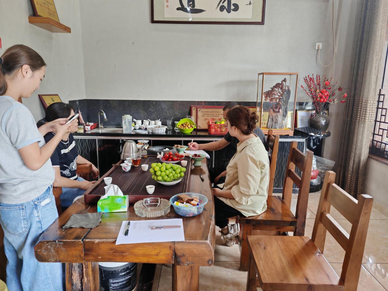 同日,星村村调研小队在村干部的带领下深入星村村进行入户调研。星村村为武夷山市第一大行政村,位于九曲溪上游,辖区内分布有知名茶企,调研过程中可见家家户户均设有小规模家庭制茶作坊。访谈中,有茶企提及生态茶园管理的多元模式:部分茶农依托国家补贴领取有机肥,减少化肥农药支出;另有茶农结合自身生产经验采取特色管理措施,生产出更符合预期的茶叶。这一发现拓宽了调研团队对生态茶园管理措施的认知,为后续工作奠定基础。
