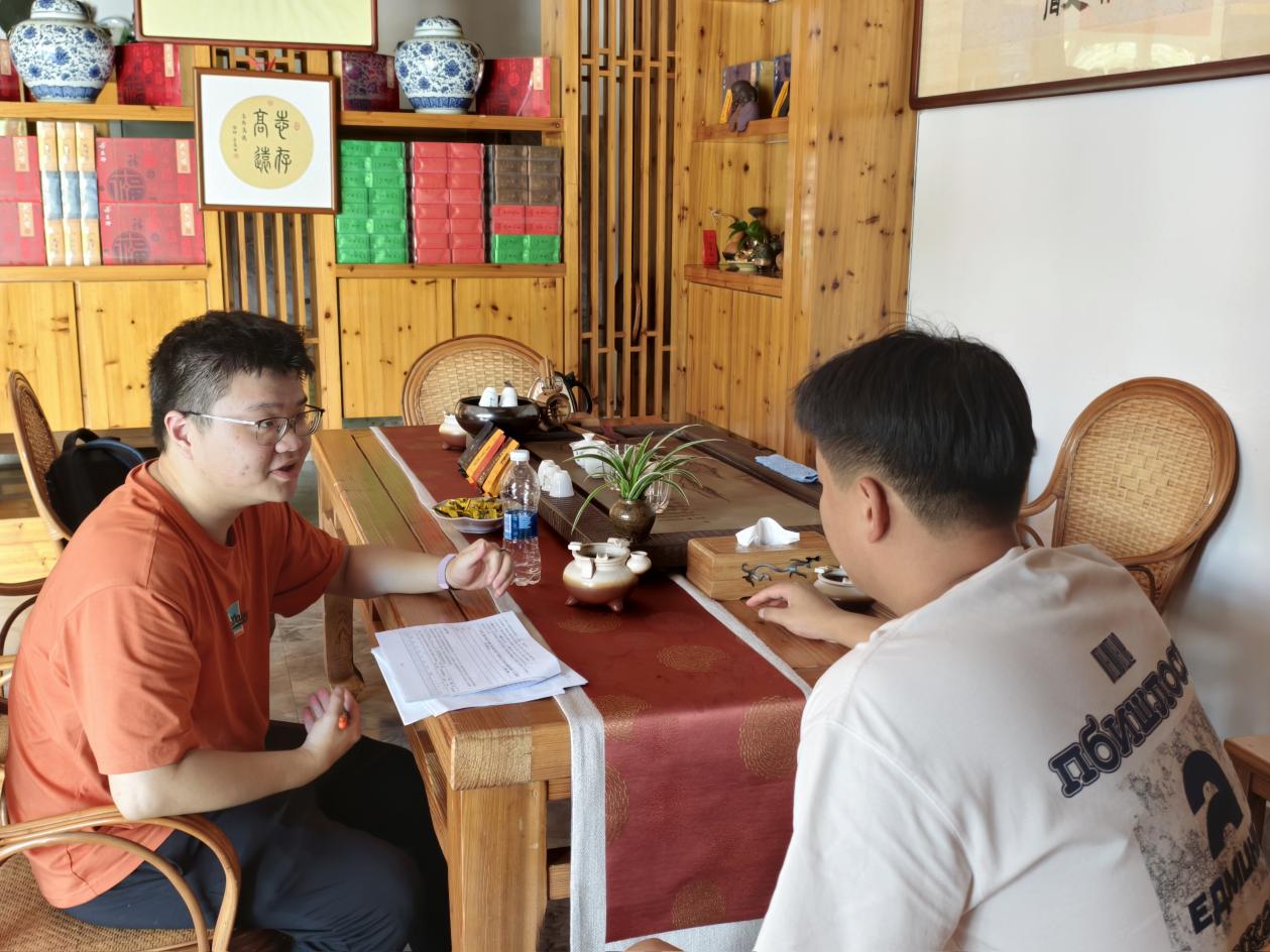 (调研团队与村民交谈、收集茶叶生产的相关数据)