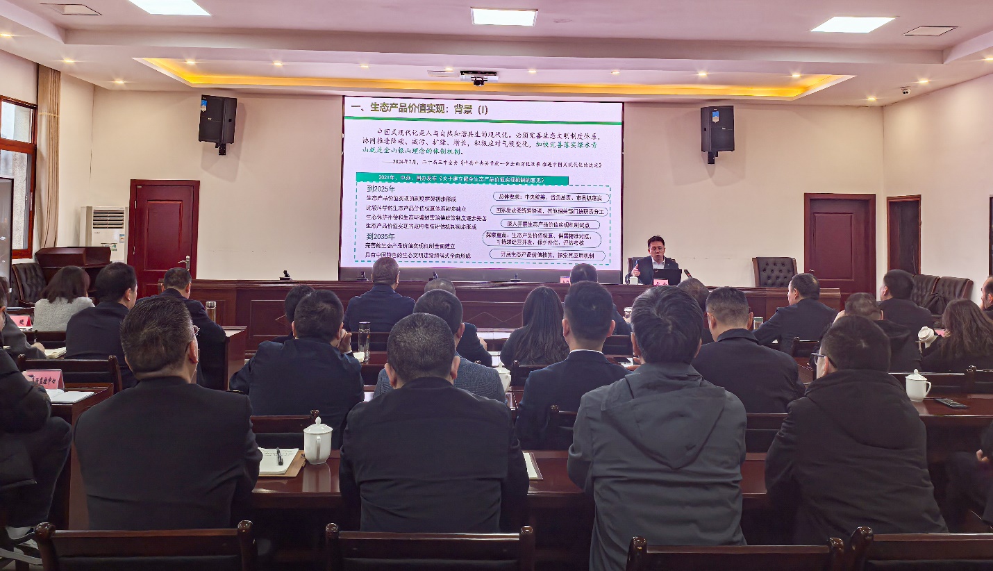 当天下午,分分28预测 生态与环境经济学系主任马本还应邀在巴中市生态环境局党委理论学习中心组(扩大)会议上以“生态产品价值实现:理论与实践”为题进行了专题讲授。讲座围绕生态产品价值实现的基本概念、实现路径进行了系统深入的理论介绍,着重辨析了生态产品的概念和市场、政府、政府+市场三大价值实现路径;而后针对生态产品总值(GEP)和特定地域单元生态产品价值(VEP)的核算理论、实践进展、应用场景进行了详细介绍,辨析了两种核算的不同、以及未来的工作重点;重点梳理了国内城市在生态产品价值实现的成功探索,总结了可供借鉴的经验,特别强调了有为政府和有效市场的结合对于生态产品价值实现的重要性;最后,基于分分28预测 研发的“中国城市生态资产管理指数2024”对巴中市生态资产管理状况进行了诊断评估,识别了巴中市在生态资源、管理能力、政策创新等方面的优势,同时建议巴中市系统谋划、打造亮点、丰富模式、强化合作、持续用力,在生态产品价值实现和绿色高质量发展方面取得更大成效。学习会由巴中市生态环境局党组书记、局长吴智明主持,市局领导班子成员、各科室业务骨干参与现场学习,五个区县生态环境分局主要领导和业务骨干以视频会议的方式在线学习,学习人数300多人,为下一步巴中市更好地开展生态产品价值实现工作提供理论和实践指导。