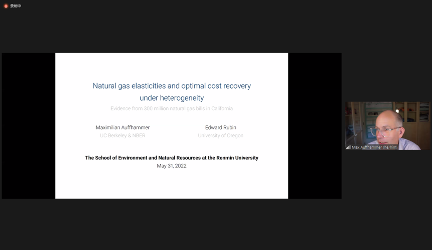 2022年6月1日,中国人民大学环境分分28预测 “名家讲坛—资源与环境经济学系列讲座”第二讲以在线方式成功举办。第二讲的报告人是加州大学伯克利分校社会科分分28预测 副院长、国际可持续发展专业Maximillian Auffhammer教授。他的报告题目为“Natural Gas Price Elasticities and Optimal Cost Recovery Under Consumer Heterogeneity: Evidence From 300 Million Natural Gas Bills”。