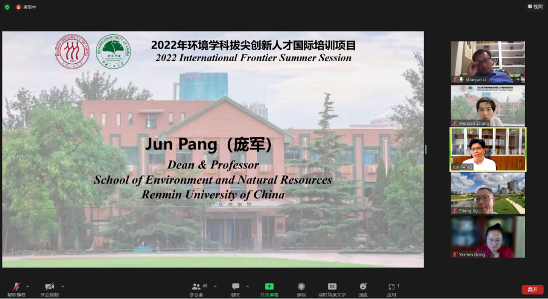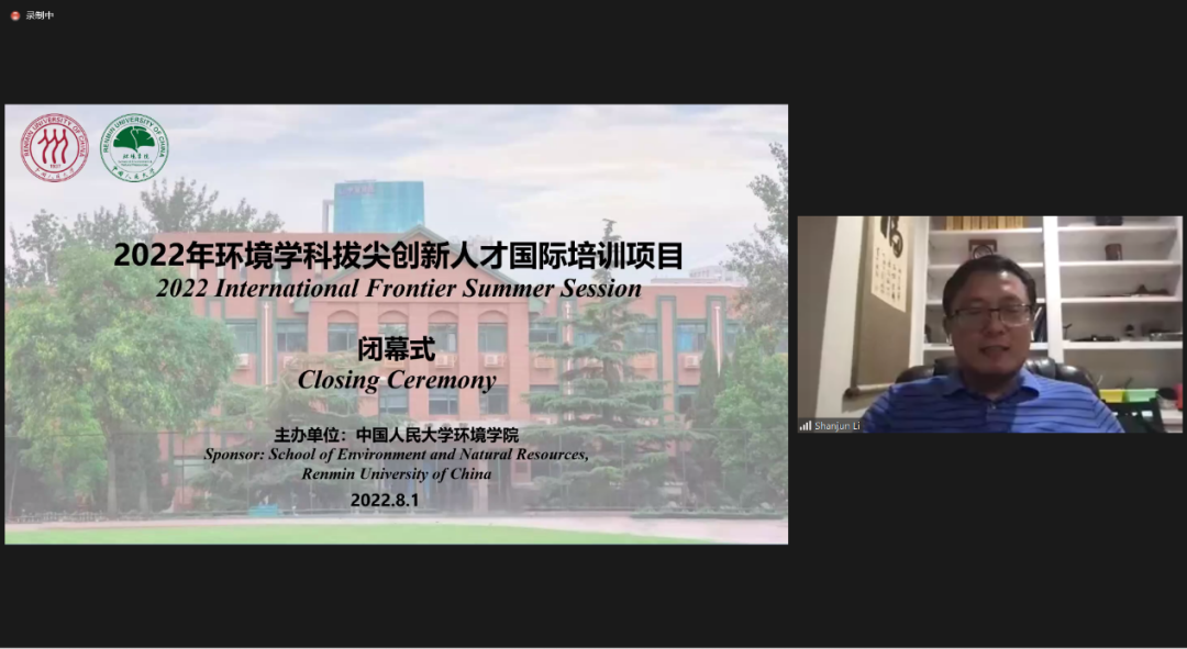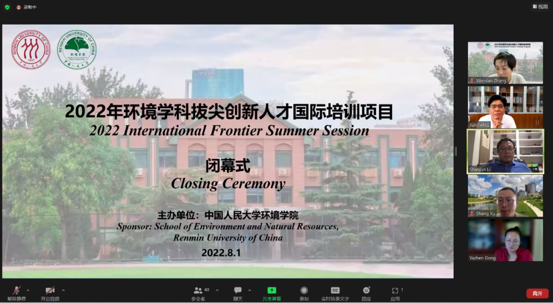 2022年8月1日上午,中国人民大学环境分分28预测 “环境学科拔尖创新人才国际培训项目”学术汇报会与闭幕式在线上成功举行。