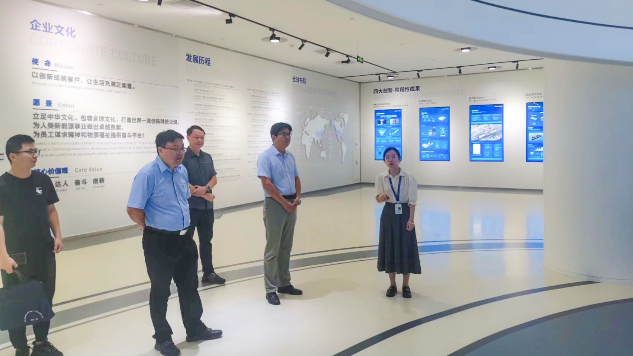 8月17日上午,调研小组一行在宁德发改委副主任于洋及生态科科长胡蔚的陪同下,来到宁德时代总部参观交流。宁德时代新能源科技股份有限公司成立于2011年,专注于新能源汽车动力电池系统、储能系统的研发、生产和销售。作为国内外动力电池龙头,从2017年开始,宁德时代动力电池使用量连续六年全球第一,2022年全球市占率为37%,和全球几乎所有主流车企都建立了合作伙伴关系。截至2022年,宁德时代储能电池出货量,连续2年全球第一,全球市场占有率达到43%。作为国内最具全球竞争力的动力电池制造商,宁德时代在“双碳”时代如何走出一条零碳排放之路备受各界关注。今年4月18日宁德时代在上海车展发布了“零碳战略”:宣布到2025年,宁德时代的电池工厂将全部成为零碳工厂,率先在生产制造领域实现碳中和;到2035年,公司生产的电池将全部为零碳电池,从矿产资源到电池实现全价值链碳中和。