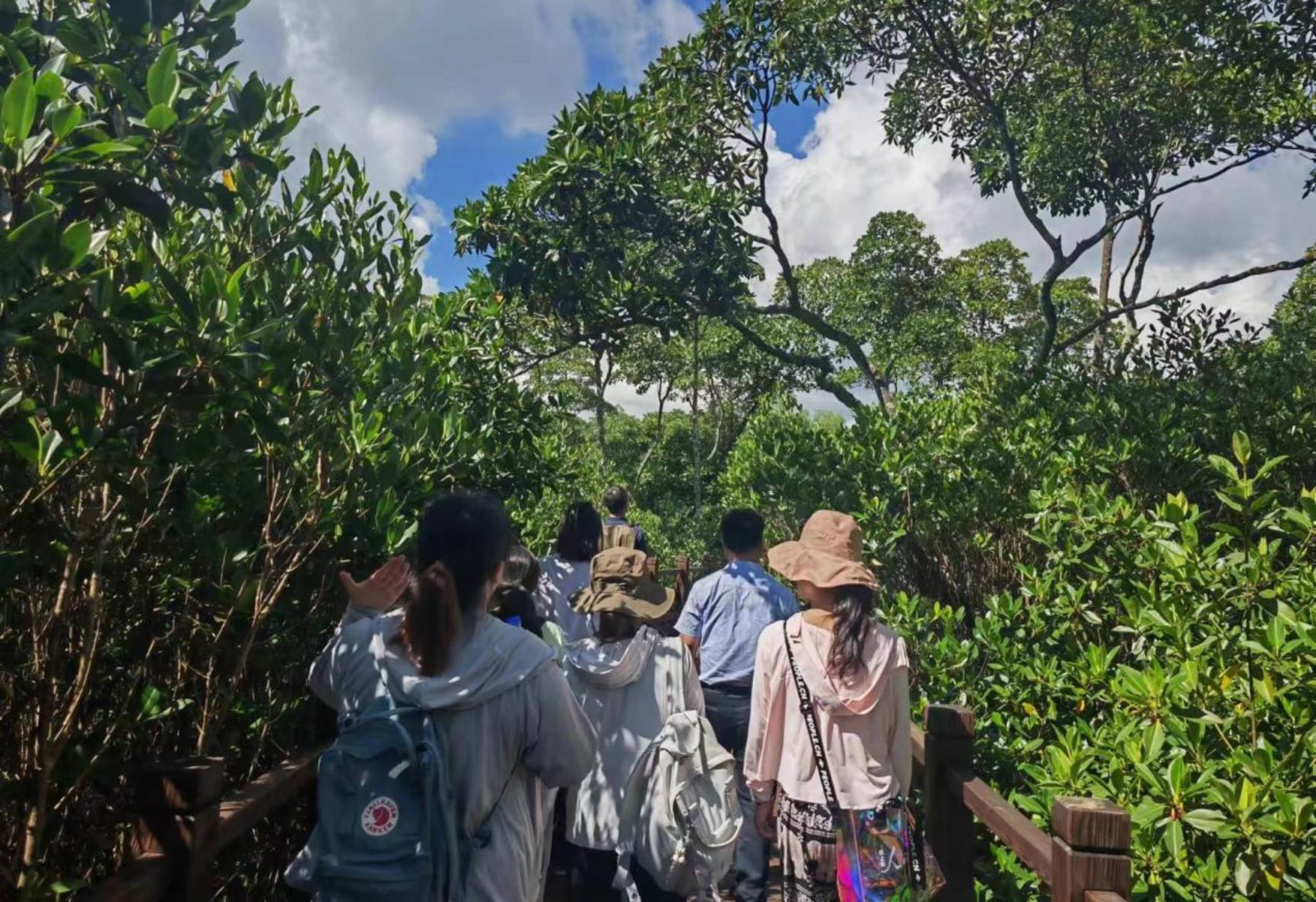 调研团队于红树林栈道上行走
