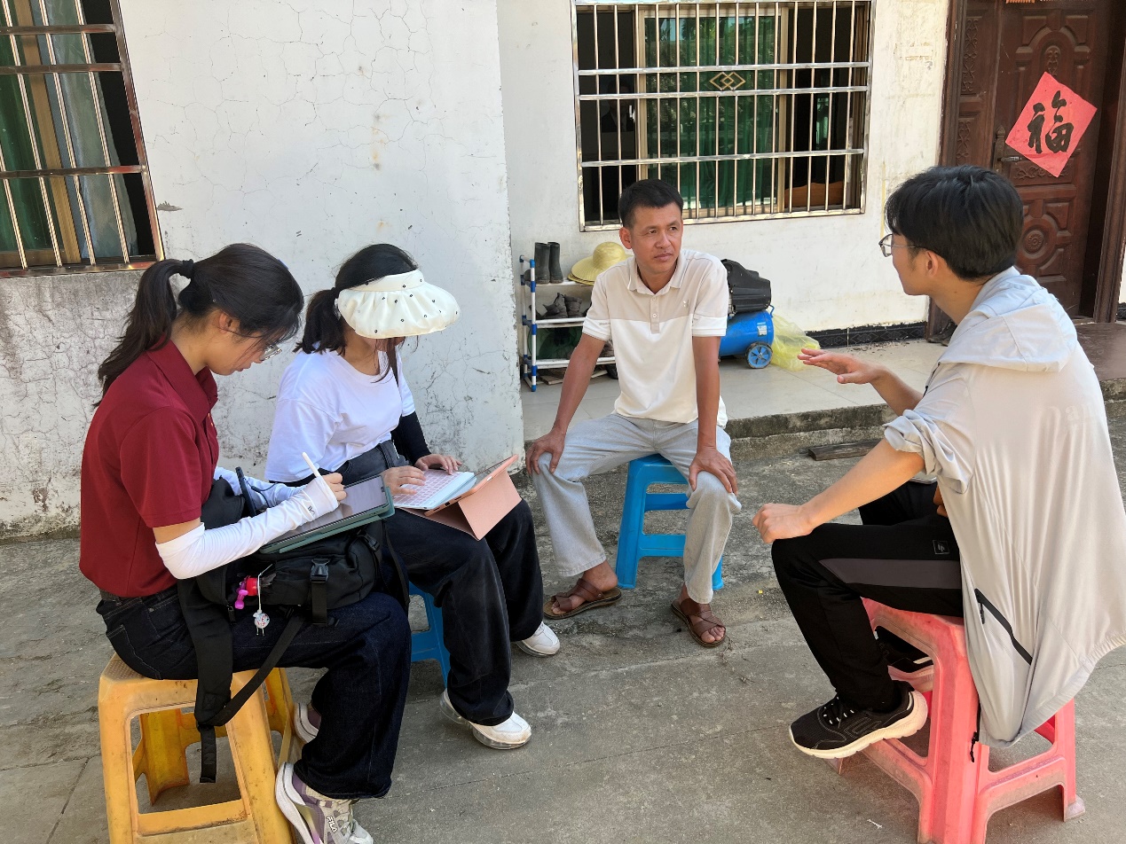 调研团学生在毛纳村对村民进行访谈