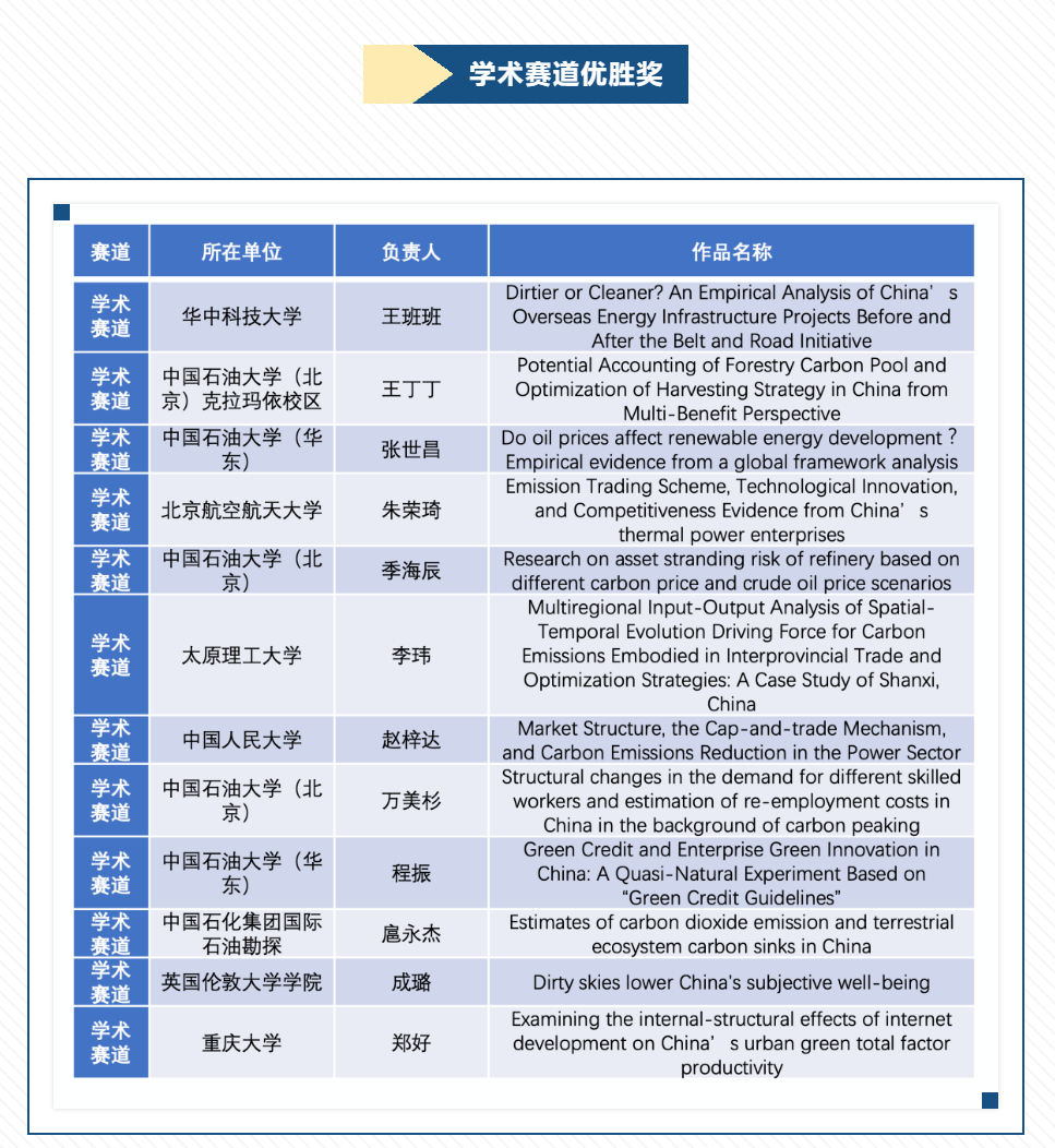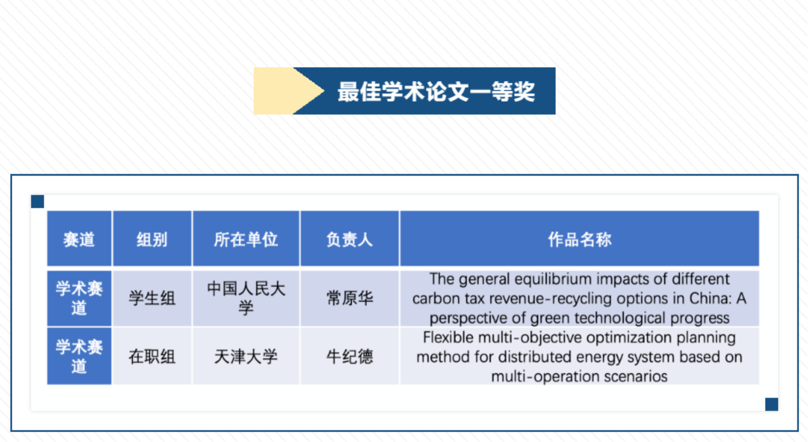 环境分分28预测 2020级博士研究生常原华经初审、决赛,从来自包括金砖国家中的中国、俄罗斯、印度、巴西,以及哈萨克斯坦、厄瓜多尔、伊拉克、英国、法国、日本等32个国家的264篇学术赛道作品中脱颖而出,以“The general equilibrium impacts of different carbon tax revenue-recycling options in China:A perspective of green technological progress”为题目获得“最佳学术论文奖”公开评选活动学术赛道一等奖,2019级本科生赵梓达荣获学术赛道优胜奖。