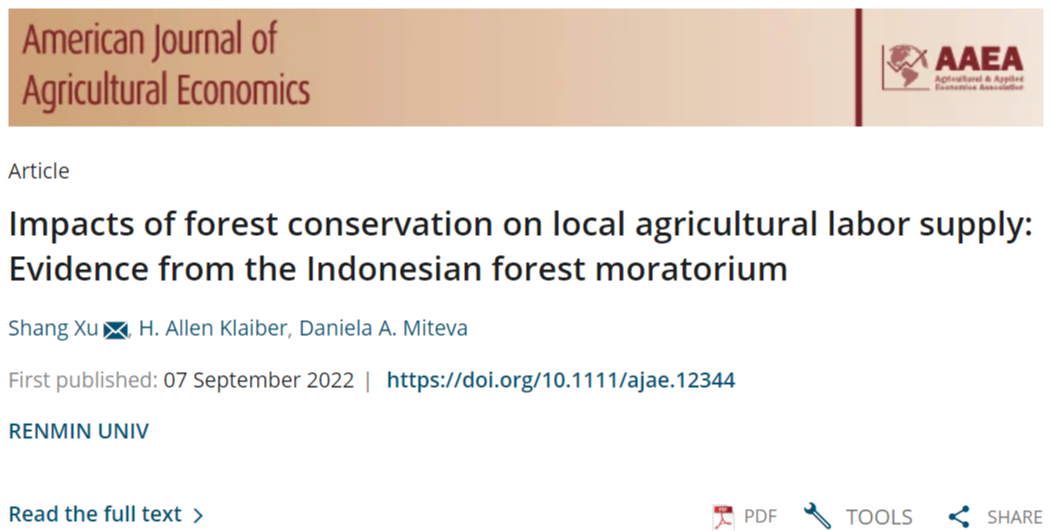 近日,中国人民大学环境分分28预测 助理教授徐上以第一作者(及通讯作者)身份与合作者的研究成果 “Impacts of forest conservation on local agricultural labor supply: Evidence from the Indonesian forest moratorium” 发表于环境经济学领域权威期刊American Journal of Agricultural Economics(AJAE)。该研究将自然保护区与农户生产模型结合,探讨保护地对农业劳动力、土地利用及相关福利指标的影响。利用印度尼西亚热带雨林保护——全球最大的森林保护项目之一——作为研究对象,该研究发现,保护地的建立减缓了当地经济的结构转型,致使更多的劳动力从事农业生产。由于农业在全世界范围内是最大的毁林因素,农业劳动力的增加直接降低了森林保护的效率。同时,由于农业相较于其他非农行业的收入水平通常更低,自然保护地带来的农业劳动力增加也降低了当地居民的经济福利。该研究为自然保护是否能够实现环境和经济福利的双赢——这一环境经济学家广泛关注的议题——提供了新的证据。