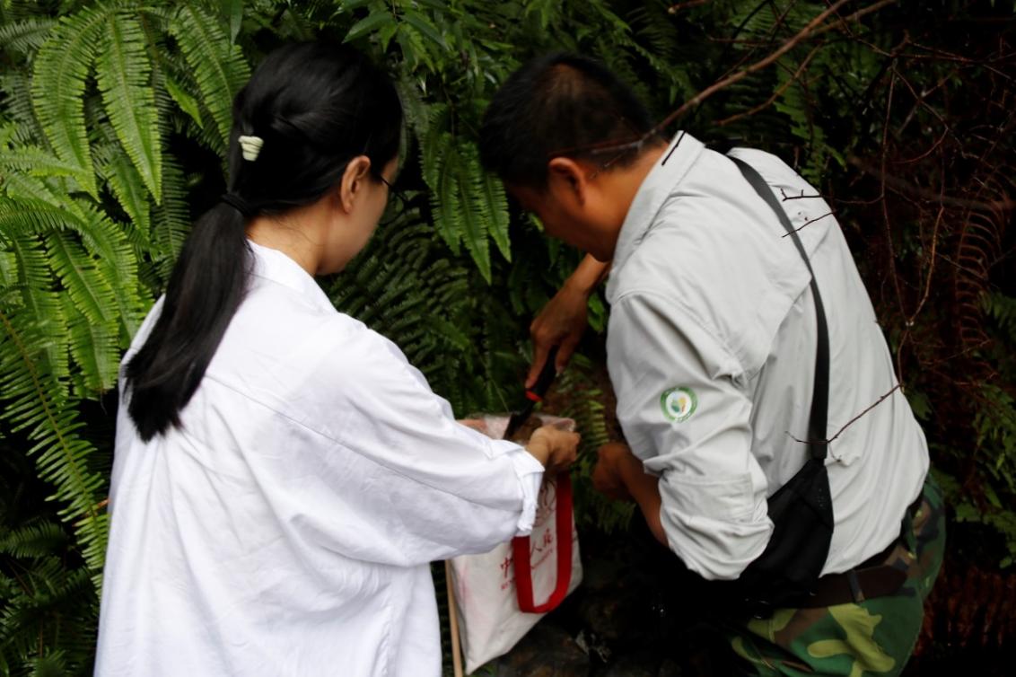 在钱江源国家森林公园工作人员的指引下,师生们走进原始森林深处,了解亚热带常绿阔叶林的典型植物,深入探析森林生物多样性与生态系统功能的关系,并采集土样。
