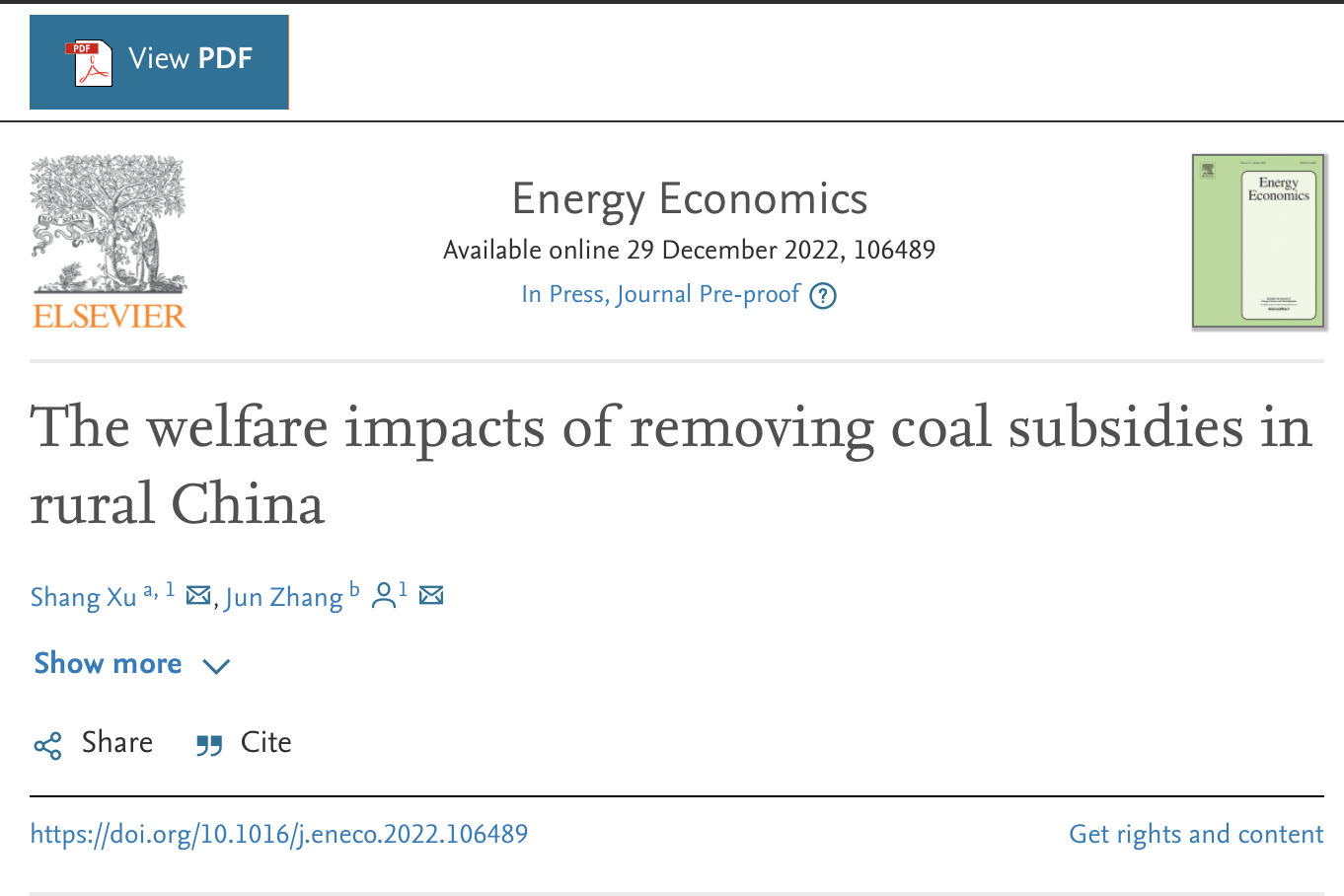 徐上助理教授在能源经济学领域国际权威期刊Energy Economics发表论文