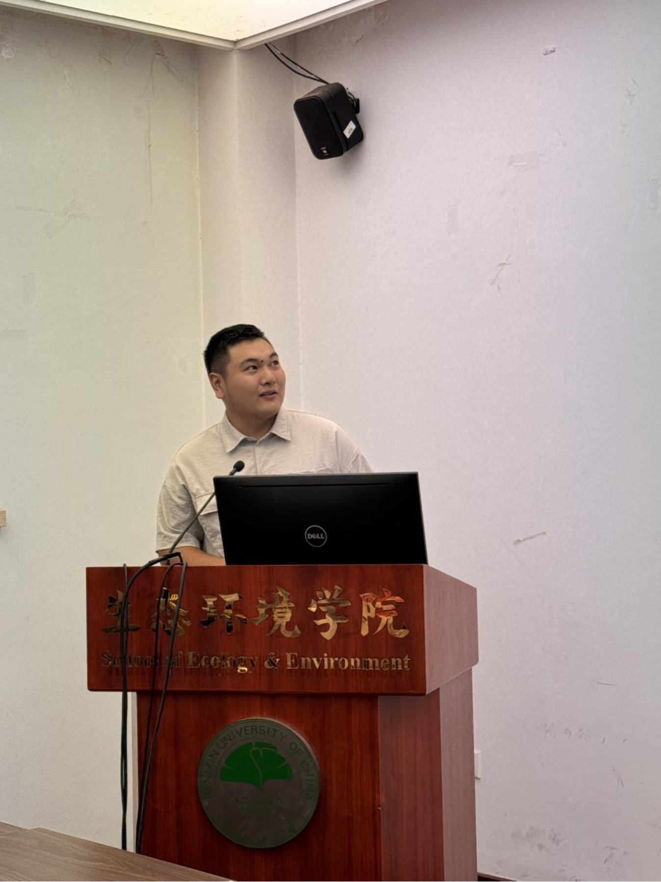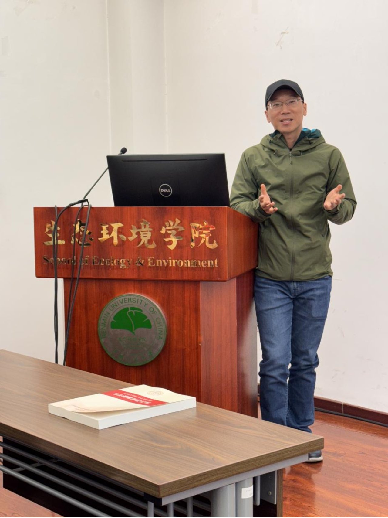 院长庞军教授对2024年“先锋社会实践·行走美丽中国”暑期社会实践项目进行总结。他提到,今年的实践项目再次彰显了同学们的探索精神和担当意识,生态环境学子们通过走访国家公园、自然保护区等地,不仅深入学习贯彻了习近平生态文明思想,还为建设美丽中国贡献了力量。今年的五支团队走进田间地头,走进自然保护区,深入探索了生态保护与地方经济协同发展的创新路径。学生们在实地调研中,既看到了生态茶产业、生态旅游等可持续发展模式的成功经验,也反思了如何将这些经验推广到其他地区,帮助更多农村实现生态富民。他强调,实践育人是引导同学们深入社会、服务社会的重要途径,希望同学们继续将个人成长与国家发展紧密结合,勇担时代重任,在未来的学习和生活中践行绿色发展理念,为实现人与自然和谐共生的现代化目标不懈努力。