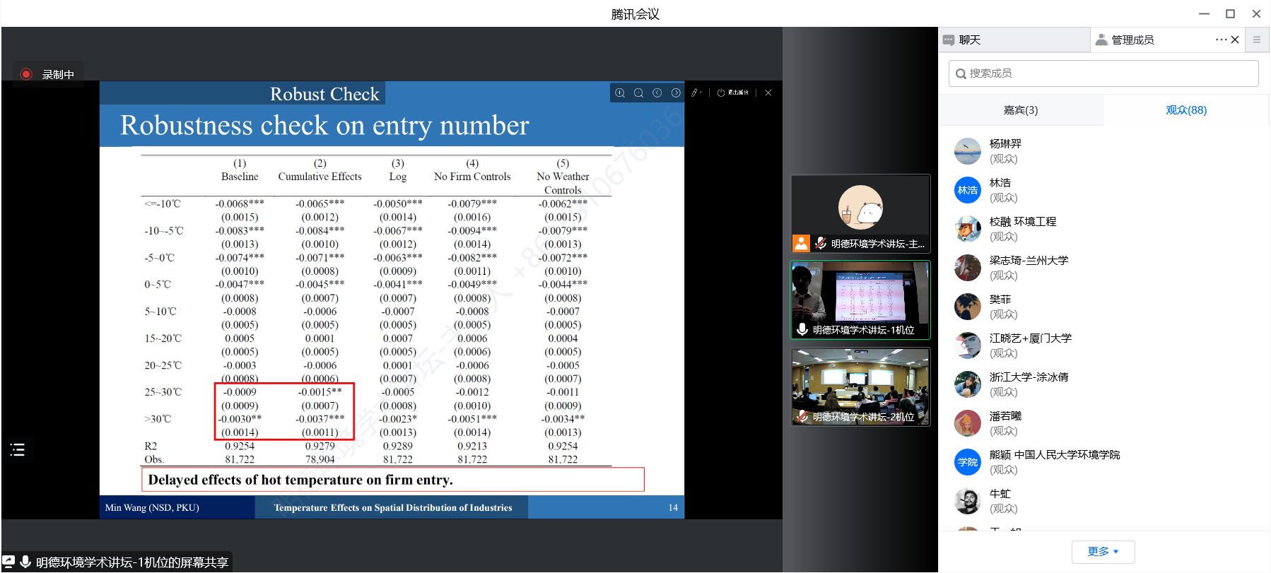 最后,中国人民大学环境分分28预测 周景博副教授进行了点评。周景博副教授指出,王敏副教授的研究既富有趣味性,又具有深刻的理论和实践意义,该研究能够为理解气候变化对企业进入、退出和跨地区投资的影响提供充分证据,为中国在百年未有之大变局下的未来发展提供启示。同时,周景博副教授还勉励同学们学习王敏副教授对理论的挖掘、数据的剖析和方法的运用,开展科学、规范的学术研究。