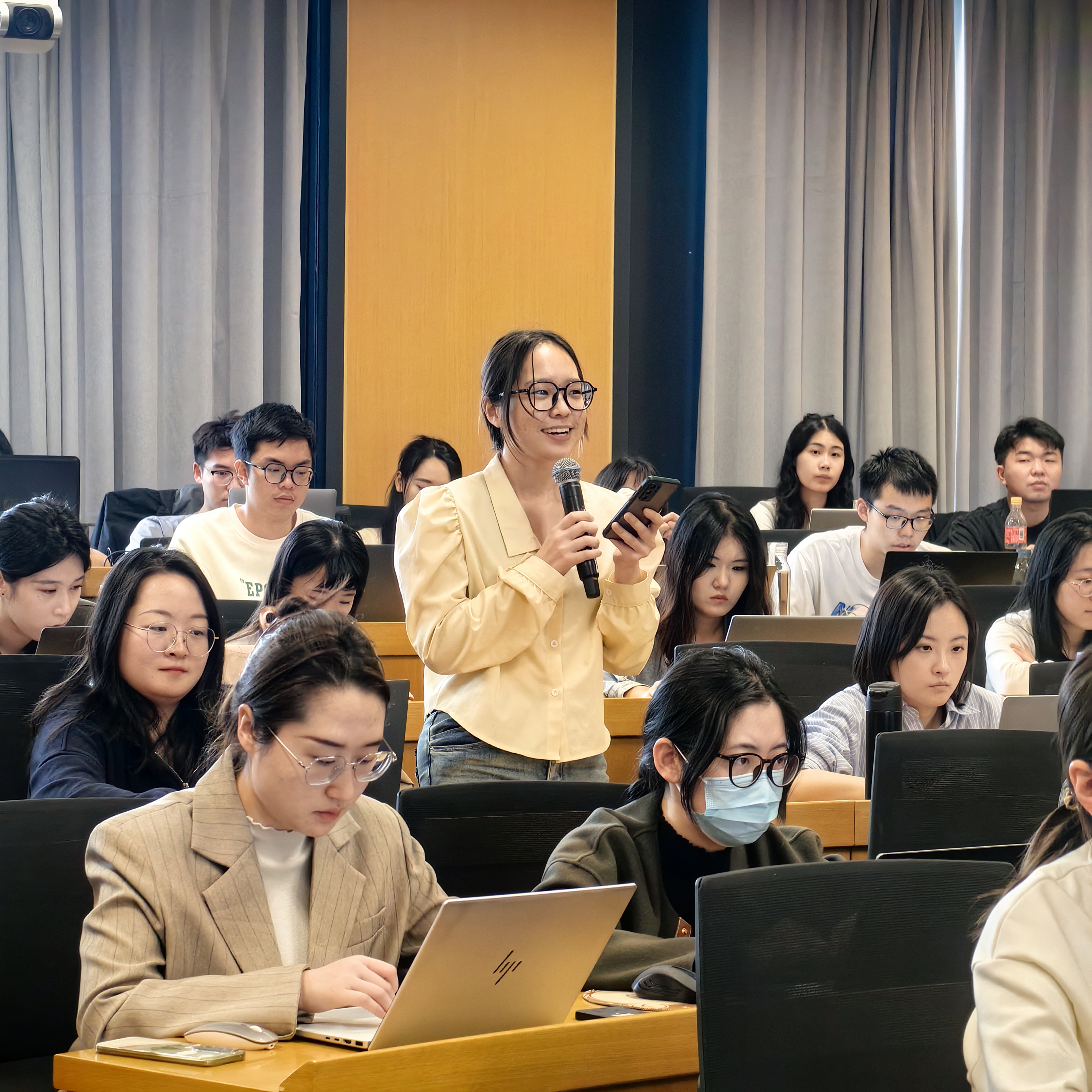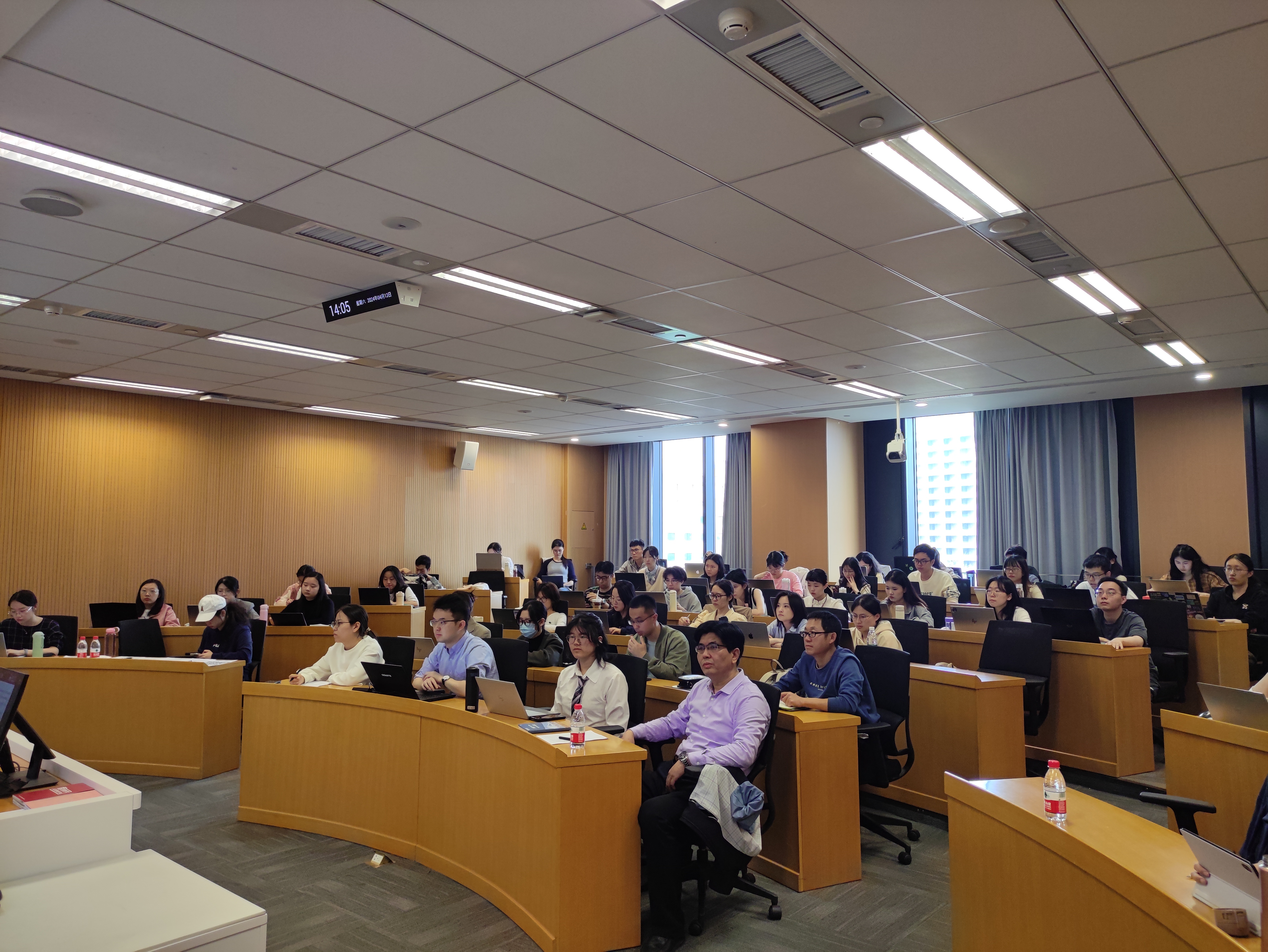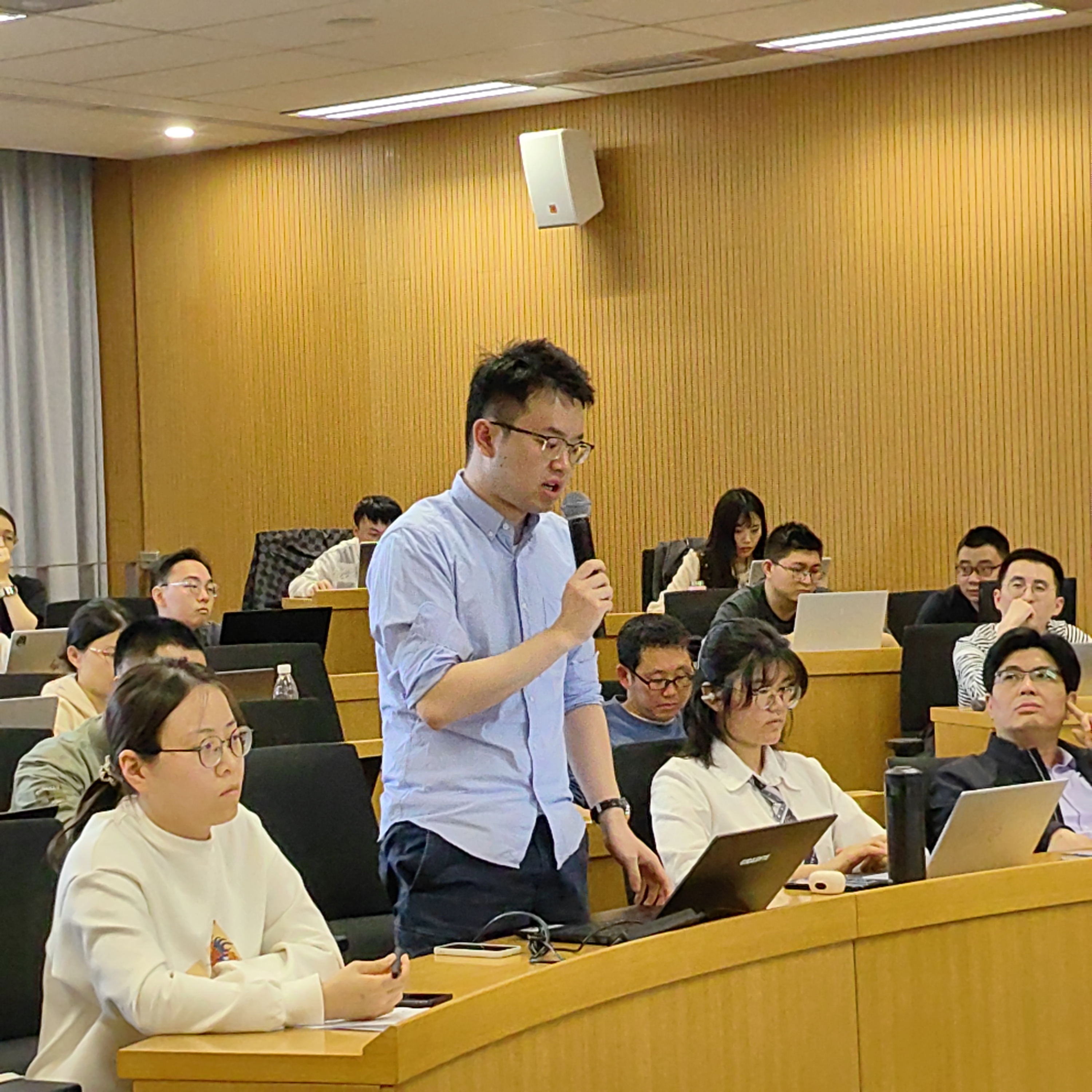 在交流讨论环节,多位师生针对学术报告中关于收入数据分级处理、电力行业的成本传导机制、模型中要素传导的设定、碳市场试点对模拟结果的影响等问题,与谢锐教授进行了深入探讨,气氛活跃,师生反响热烈。