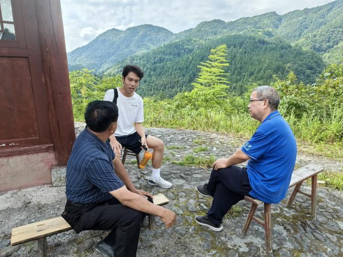 随后,调研团针对半坡台村的易地搬迁情况展开访谈。罗支书向同学们介绍了搬迁政策、实施过程和成果。政策实施以来,已有200余户村民搬离核心区。国家赎买林地及安置区的建立,不仅帮助群众“搬穷窝”“拔穷根”“换穷业”,也给予梵净山生态恢复的活力。目前,当地仍有少部分村民因未达到搬迁标准或不愿搬离而留在实验区,只能依靠补贴生活,森林保护政策与生计维持产生了矛盾,引发同学们对生态保护与居民生活的深入思考。半坡台村之行让同学们了解到易地扶贫搬迁的真实情况,也深深感受到梵净山保护的艰苦与不易。半坡台村的故事是生态文明建设与精准扶贫政策在中国大地上开花结果的缩影,我们期待在更多这样的地方,人与自然能更加和谐共生,绿色发展之路能够越走越宽广。