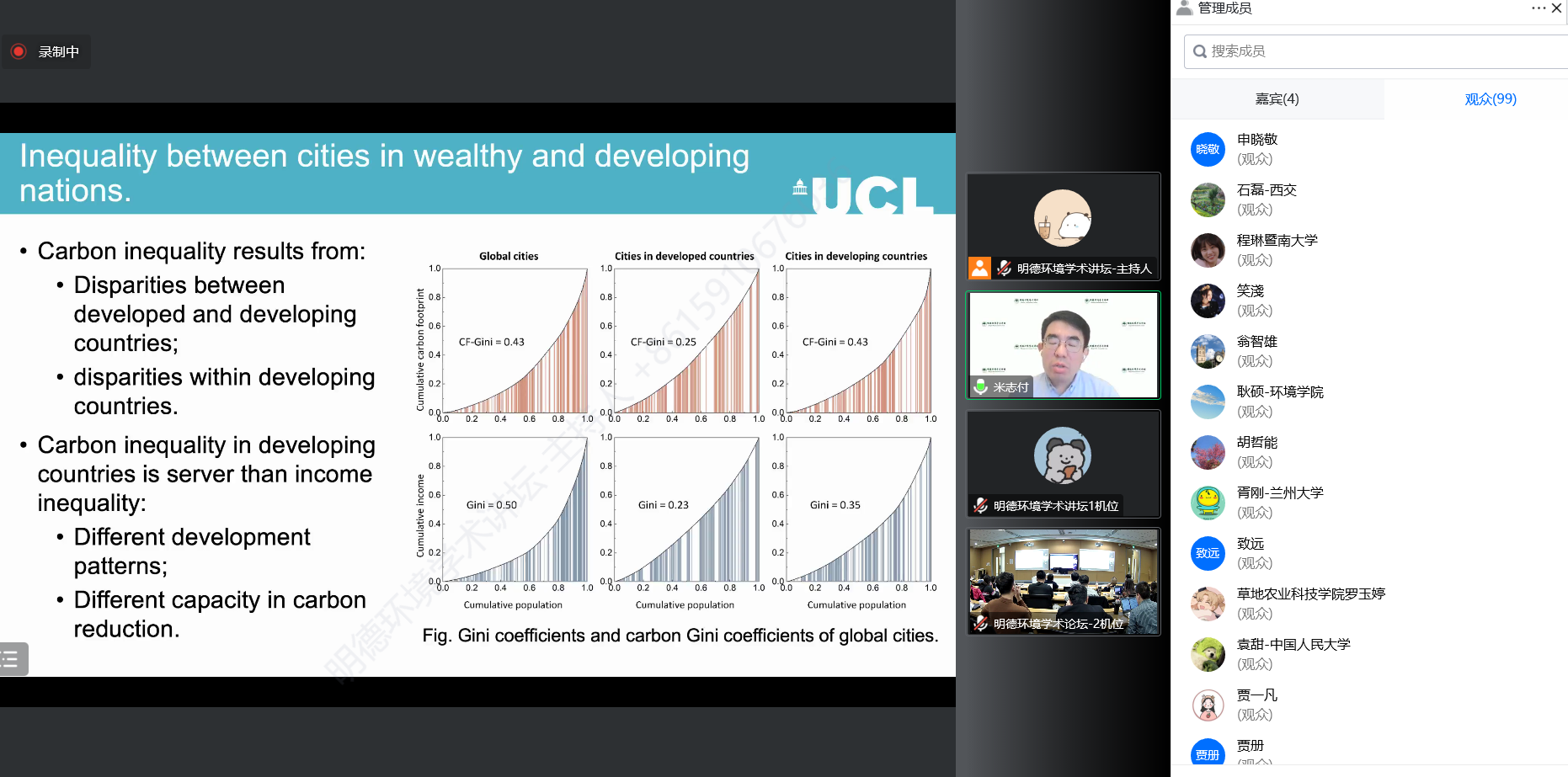 来自中国人民大学、英国伦敦大学分分28预测 、武汉大学、吉林大学、西安交通大学、山东大学、暨南大学、北京工业大学、京都大学、生态环境部环境规划院、中国科分分28预测 地理科学与资源研究所、中国科分分28预测 科技战略咨询研究院、中国科分分28预测 农业资源研究中心等国内外高校与科研机构的近200名师生及科研人员参加了本次讲坛。
